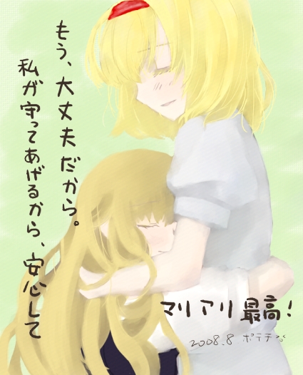 こんな大人しいマリサさnもいいね♪ やはりこの二人は一緒にいると アリスさんは優しく面倒見てくれる姉で(もしくはおかあさん) マリサさんはわがままで甘えん坊な妹(お子さん)ですよね☆ (、、、て、縮んでちょっとぽやけたように見えるけど、 (画像の上にクリックすると元サイズ見れますよ。 魔法の森でずっと幸せに暮らせるように、こんな二人が大好きです、、が。 実はこの前どっかで読んだものの影響ですごいものも描いたんです。 まだ線画のままなので色塗るかどうか悩む中。 衝撃なシーン、、じゃなくてイメージですわ(自分にとっちゃ。 モノクロのほうでもいいかな? タイトルはまず「ルナティック白黒と哀れな七色」に、、なんちゃって。